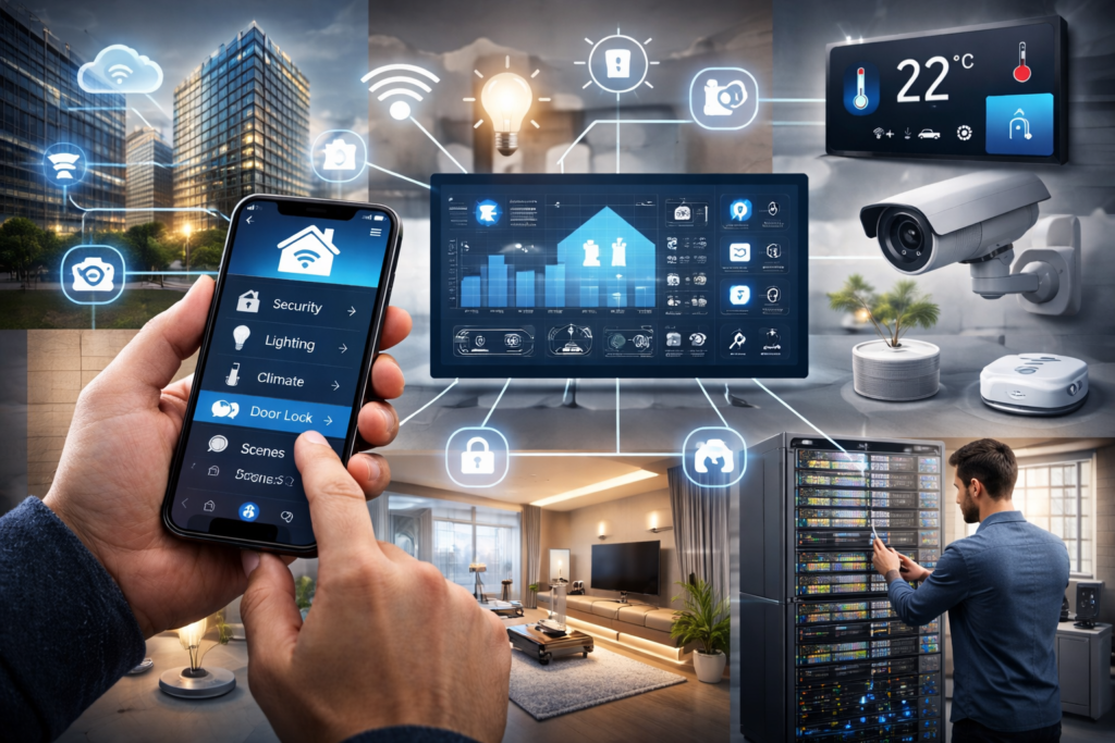 Intelligent solutions for enhanced security, comfort, and control in residential and commercial spaces, enabling seamless smartphone-based monitoring, automation, and remote access anytime, anywhere.